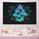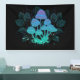 Mysterious, bioluminescent, hallucinogenic, bright toadstools with bushes of marsh plants on night, dark, glowing background. Glowing mushrooms. Goblincore, Mushroomcore,