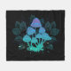 Mysterious, bioluminescent, hallucinogenic, bright toadstools with bushes of marsh plants on night, dark, glowing background. Glowing mushrooms. Goblincore, Mushroomcore,