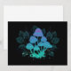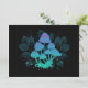 Mysterious, bioluminescent, hallucinogenic, bright toadstools with bushes of marsh plants on night, dark, glowing background. Glowing mushrooms. Goblincore, Mushroomcore,