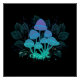 Mysterious, bioluminescent, hallucinogenic, bright toadstools with bushes of marsh plants on night, dark, glowing background. Glowing mushrooms. Goblincore, Mushroomcore,