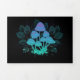 Mysterious, bioluminescent, hallucinogenic, bright toadstools with bushes of marsh plants on night, dark, glowing background. Glowing mushrooms. Goblincore, Mushroomcore,