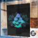 Mysterious, bioluminescent, hallucinogenic, bright toadstools with bushes of marsh plants on night, dark, glowing background. Glowing mushrooms. Goblincore, Mushroomcore,