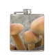 This awesome flask features a beautifully detailed photograph of 4 small yellow toadstools emerging from a tree trunk in a park. The photograph was taken using macro photography to show the fine detail of these pretty little fungi.