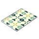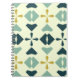 Vintage geometric pattern in shades of blue, lime green, and petrol yellow.