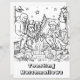 Cute coloring page with a with a camping theme. A family or friends sitting around a campfire toasting marshmallows.