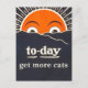 This postcard features a reproduction of a vintage poster of the sun, altered with the phrase, "Today, get more cats."