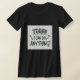 The material is a great quality that is hard to find with most tee shirts. Fabric was not see-through or thin at all, but was also very soft and comfortable. The shirt description states that it runs a little small, so I sized up one size for a perfect fit! I would definitely buy this type of tee shirt again because I love the fit and high quality fabric that I cannot find anywhere else. The printing was perfect and just as pictured. Loved the cute quote and really enjoy the tee in both the quality and design. I love quirky typography designs and funny quotes and I am extremely pleased with the overall quality and value I get at Zazzle!