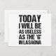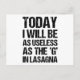 TODAY I WILL BE AS USELESS AS THE G IN LASAGNA POSTCARD