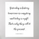 Here's a wonderful inspirational, motivational quote by Eleanor Roosevelt, wife of President Franklin D. Roosevelt. She was well known for her thoughtful words and high ideals and remains so today. This quote was created using a lovely handwriting, script typography which nicely suits this wonderful quote, "Yesterday is history, tomorrow is a mystery, and today is a gift; that's why they call it the present."