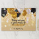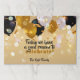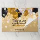 Modern personalized paper placemat design featuring gold, white and black balloons, confetti, bokeh lights and sparkles on a gold background. The text is fully customizable.