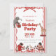 Celebrate in classic vintage style with this charming kids birthday party invitation featuring nostalgic toy illustrations and timeless red striped details.