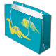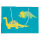 This gift bag is great for the toddler in your life. With a place to customize with his name and age, your little boy will love the simple yellow brontosaurus and green and yellow triceratops illustrations on a bright teal background.