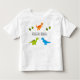 Cute toddler fleece shirt with colorful dinosaurs, dinosaur footprints and a place to personalize with child's name.