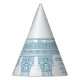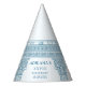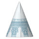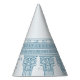 Greek or Roman Toga party hat featuring a minimalist Greek meander pattern and temple columns in blue. Customizable product for a memorable celebration. Perfect for your Ancient Greece or Ancient Rome-themed weddings, engagements, graduation parties, anniversaries, save the dates, bachelorette and birthday parties.