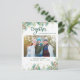 Pretty watercolor holly berries and greenery and the text "Together is the merriest place to be" surround this Christmas photo card personalized with your photo, family name, and message.