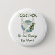 Wear your message. Share your mission. This Together for Peace button features a radiant white dove carrying an olive branch, soaring across a vibrant globe—a timeless symbol of peace, unity, and global hope.