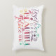 This modern decorative throw pillow features a stylish typography design, which reads "Together is a beautiful place to be." Text as well as stylistic elements (swirls, arrow, flowers, and leaves) all in multicolored watercolors. Back of the pillow is a solid coral color, but can be customized to any color you'd like.