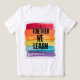 The t-shirt design features the phrase "Together We Learn" prominently displayed in bold, multi-colored typography. The words are set against a vibrant, abstract background that suggests interconnectedness and growth. The overall design conveys a sense of unity, collaboration, and the power of learning together.