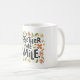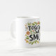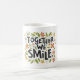 "Together We Smile" in a vibrant rainbow gradient. Each word smoothly transitions from one color to the next, creating a cheerful and optimistic look.The image you uploaded shows a mug with the phrase “TOGETHER WE SMILE” surrounded by colorful flowers and leaves. This could be a great gift idea or a symbol of positivity and teamwork.