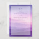This elegant wedding invitation features a gradient color palette transitioning from deep purple to soft pink, creating a romantic and dreamy atmosphere. The layout is clean and sophisticated, with centered text in an elegant serif font that adds a touch of formality. The design includes subtle decorative elements such as small floral accents, enhancing the overall theme without overwhelming the simplicity. Perfect for couples looking to set a refined and intimate tone for their special day, this invitation captures the essence of a serene celebration.