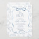 Having your Toile De Jouy Blue Baby Shower Invitation match the theme of your party is a great detail that your guests will appreciate. The thoughtfulness of a consistent party theme is often appreciated and can show your guests that you can host a cohesive event.