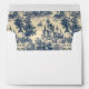 Elegant classic toile de jouy pattern features a castle in woodland setting. Delft color of dark blue is printed on aged ivory color background. Goes naturally with fairy tale, princess, or vintage style events and stationary theme.