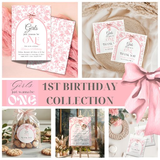 Celebrate your little girl's first birthday with this charming Coquette-inspired napkins, perfect for the modern, stylish one-year-old! Featuring a delicate pink bow and the playful slogan "Girls Just Wanna Be ONE," this design captures the essence of youthful fun and elegance. Ideal for a chic, feminine birthday celebration, this design blends a sweet coquette style with soft, inviting colors. Customize the details to make it uniquely yours and create a memorable first birthday announcement that family and friends will adore.