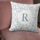Toile Floral Monogram Dainty Blue French Theme Throw Pillow