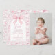 Toile Pink Bow Floral 1st Birthday Photo Invitation