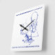 A delightful toile-inspired clock in blue willow colors featuring playful kitty cats romping in a bathroom.