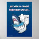 Just when you thought the bathroom was safe.... Here comes the perfect poster to feed your already paranoid fears about SHARKS! A cartoon illustration of a great white shark coming out of a toilet!