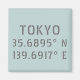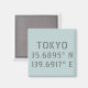 Modern, urban square magnet features latitude and longitude coordinates of Tokyo, Japan in gray text on blue background