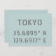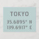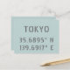 Modern, urban graphic features latitude and longitude coordinates of Tokyo, Japan