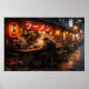 On a dark and stormy night a Japanese salaryman enjoys a steaming bowl of ramen in solitude.