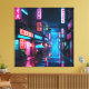 Lofi-style art showcasing a small street in Tokyo during a rainy night, with neon lights illuminating the surroundings.