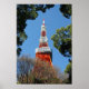 View through the trees of the Tokyo Tower, Shiba-koen district, Minato, Tokyo, Japan