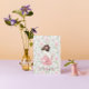 “She is tolerable, but not handsome enough to tempt me.” Quote from Pride and Prejudice by Jane Austen. Pink floral vintage design with a portrait of a woman from the regency era.