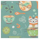 In my original vector illustration, Tom cat dreams of his favorite seafood noodle soup, surrounded by cat paw spoons, spoon bursts, noodles, chopsticks and more. I created this design for the Spoonflower noodle bowl design challenge.