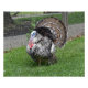 Male turkeys, also called toms or gobblers, are large, round birds with powerful muscles and colorful plumage. Females are smaller and without many of the male's facial features. The males are most easily recognizable by their tail fans, “beard” of thin feathers on the chest and colorful facial wattles, including a snood, which is a long fleshy appendage over a male's beak. Wild turkey plumage has many different shades of color and iridescence.