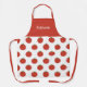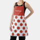 An apron with tomato pattern and customizable text or name on red background. A nice gift for a cooking chef, a farmer, or a kid!