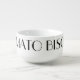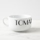 Tomato Bisque Soup Mug, black decorative text on an all white kitchen soup mug. Mug reads: Tomato Bisque, personalize it to suit. Try adding a person's name, a restaurant or cafe name, etc.