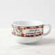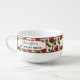 Personalized soup mug featuring tomatoes, courgettes and basil with retro labels and your custom texts. Nice for Mediterranean and vegetable soups.