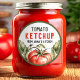 Editable Homemade Tomato Ketchup canning Stickers featuring a watercolour tomate illustration. Make your own canning labels for your favourite homemade tomato recipes. To use on your canning lid or on the side of the canning jar. Perfect for preserves, homemade gifts or as kitchen pantry organiser.