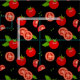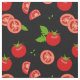 Tomatoes and Tomato Slices Pattern on Black Fabric