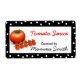 Pretty canning labels ready for you to personalize with your own information. A black with white polka dot frame, around the edges of this white canning label. Graphics and a photo combined of tomatoes, in the left lower corner, with red and black text. Great for your business or your home made goodies. Customize if you want to change text color or font style. Perfect for anything in a jar, box, or can.