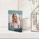 Create a memorable and unique graduation keepsake with this acrylic block featuring a vertical or portrait oriented photo in a unique arched layout, on a background of organic wavy stripes in shades of mint and spruce green. "Graduate" appears beneath, along with your school or college. Personalize with your graduation year curved across the top.