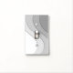 Stylish retro design on a custom light switch cover. Swirl wave design and text with 3D layered effect are in tones of silvery gray over white.