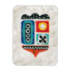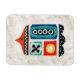 A colorful abstract collage with diverse shapes and patterns embodies a playful and quirky form. Dominant colors include blue, red, and white contrasted against a textured background.