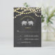 Modern chic elephant chalkboard strings of lights wedding or related event RSVP. Please personalize it with your own text occasion-accordingly or click the "Customize It" button to go to the design tool where you can add text, change the font, text size, text color, text positioning and more. **Matching products, ie: postage, reception cards, menus, thank you notes, programs, table numbers, place cards.... are all available upon request.