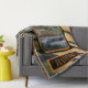 A quality printed throw has its advantages. This is a much finer weave throw than its loopier cousins, and though lighter, it is worth the investment for custom room accessorizing. The back is much prettier than the typical brown, and the fringe on the long sides very vivid, the selvage nicely done. Before photographing, I washed the throw in cold water, delicate, with a thicker woven throw the same size. On tumble dry low, this throw was dry in half the time as the other. This is a very practical quality if you use throws for furniture covers or to wrap up in frequently. The sleekness of the fabric makes it a great layer for accenting or protecting without the feeling of sitting on too much stuff. Perfect for napping or when you feel a light chill coming on. The color printing is beautiful and on this fabric, matched the design and color of my Photoshop image. This is an advantage for blending room fabrics and colors. The fringe on the short sides prints the colors from the design image and therefore varies from the side fringe. I streaked a white fractal line through the plaid pattern to give the illusion of weaving. This printed as crisp as an illusory thread, and put some white in the short side fringe, showing another advantage of print vs loomed- for artistic purposes, line lines, detail, and color integrity can be planned and preserved. My loomed throws have color limitations and more of a needlepoint texture. Print throws reproduce an exact image. The throw felt a little stiff straight out of the package, but this went away in the first delicate wash. Of course I searched the wash water for ink or bleeding and there was none.